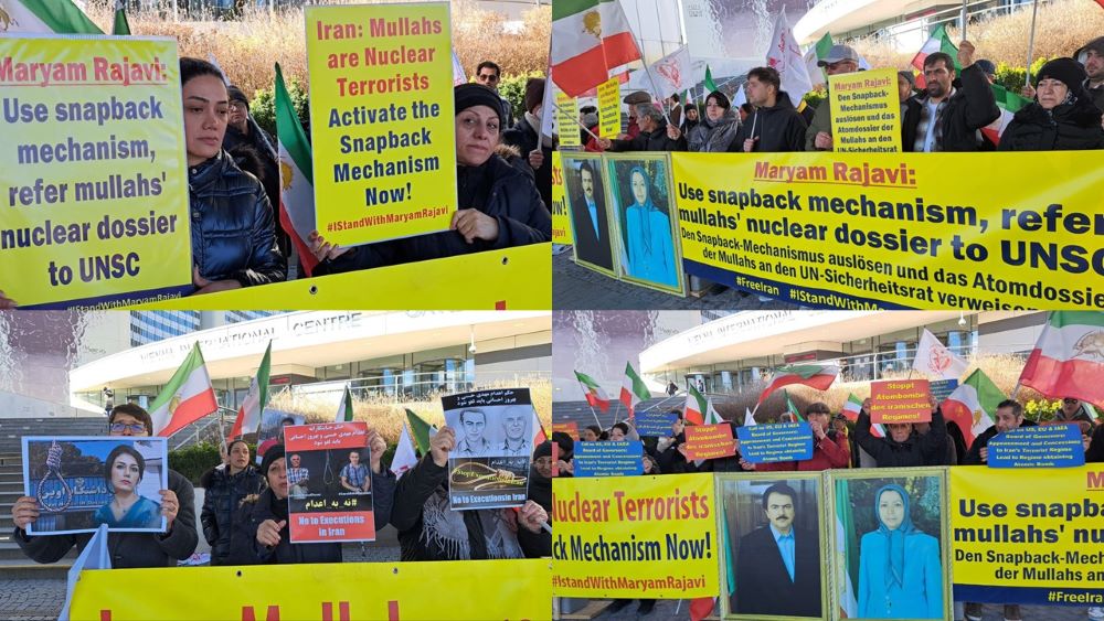 The Iranian Resistance supporters urged the IAEA to refer Iran’s nuclear dossier to the UN Security Council. They also demanded a firm stance against the Iranian regime’s terrorism, warmongering, and espionage operations.