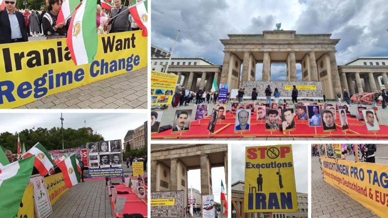 Iranians in Berlin protest outside the regime’s embassy, denouncing executions and demanding democratic change and accountability.
