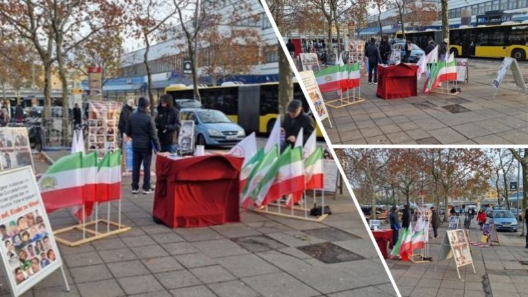 Iranian resistance supporters in Rostock protest executions, honor uprising martyrs, and call for a democratic republic in Iran.
