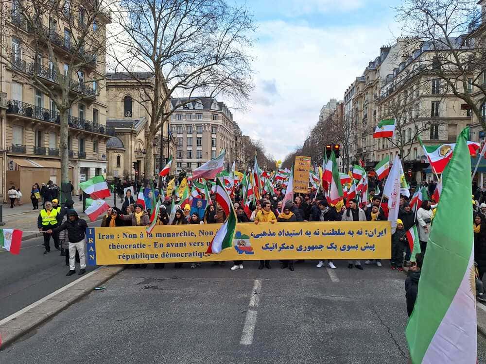 Paris, February 8, 2025 – Thousands of Iranians and international dignitaries gathered in Paris to mark the 46th anniversary of the 1979 anti-monarchic revolution and to call for the downfall of Iran’s ruling theocracy. Under the theme “No to Monarchy, No to Theocracy—Yes to a Democratic Republic!”, the demonstrators voiced their rejection of both the Shah’s dictatorship and the current clerical regime, advocating for a democratic and secular Iran.