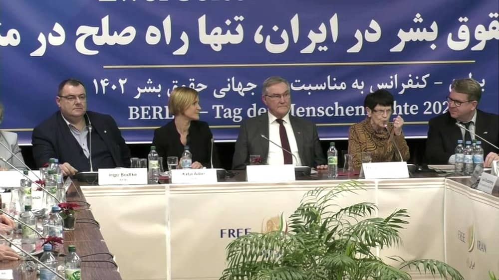 Prominent politicians who took the floor during the conference included Dr. France Josef Jung, former German Minister of Defense; Leo Dautzenberg, former MP from the Christian Democratic Union (CDU) and Co-Chair of the German Solidarity Committee for a Free Iran; Carsten Müller, senior member of the Legal Commission of the Federal Parliament from CDU; Ingo Bodtke, a member of the German Bundestag from the Free Democratic Party (FDP); Erhard Grundl, member of the Alliance 90/The Greens (Green Party); Christoph de Vries, member of the Committee for Home Affairs and Community, and member of the Oversight Panel of the Federal Parliament from the CDU; Katja Adler, a member of the Bundestag from the Free Democratic Party (FDP); Diana Stöcker, member of the Health Committee, alternate member of the Education and Research Committee, and Secretary of the Federal Parliament from CDU; Martin Patzelt, former member of the Federal Parliament and Co-Chair of the German Solidarity Committee for a Free Iran; and Christian Zimmermann, Secretary of the German Solidarity Committee.