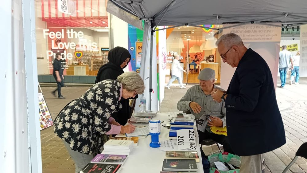 The Academics in Exile Association held a public bookstall and photo exhibition in Manchester to protest Iran’s recent surge in executions, calling for the release of political prisoners.