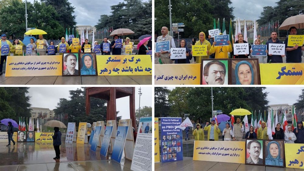 MEK supporters in Geneva denounce executions in Iran, demand justice, and support democratic change with a focus on women’s resistance and human rights.