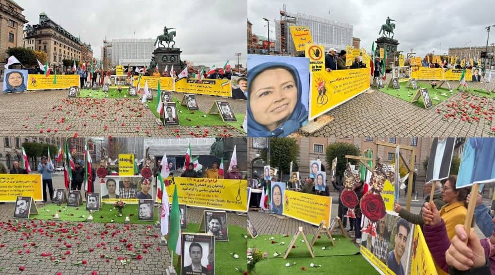Supporters of Iran’s Resistance in Stockholm protest executions, urging global justice and democratic change in Iran.